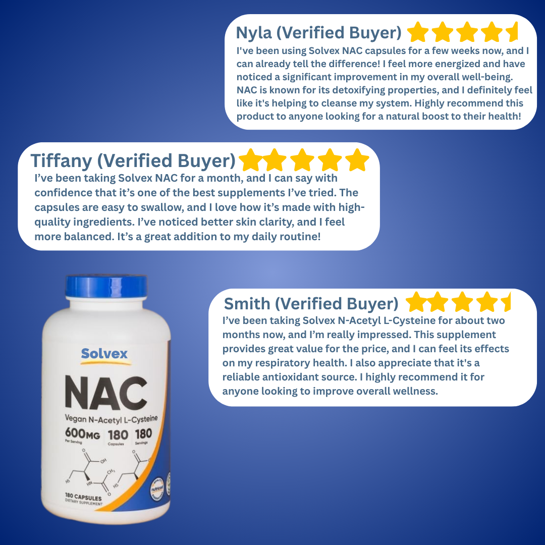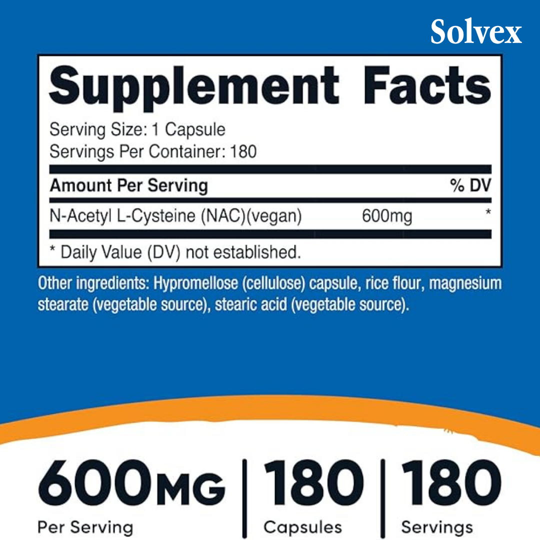 Solvex NAC Capsules help clear congestion, support respiratory health, and promote clearer, healthier skin—giving you a breath of fresh air and a radiant glow from the inside out.