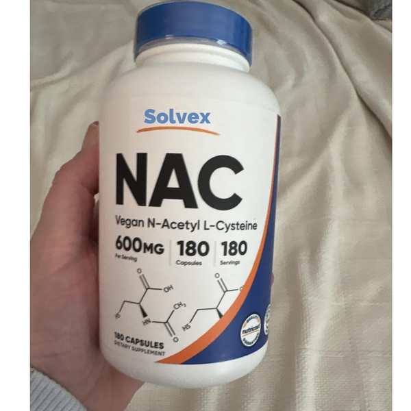 Solvex N-Acetyl-L-Cysteine supports antioxidant production, helps clear mucus, promotes skin clarity, boosts energy levels, and aids detoxification.